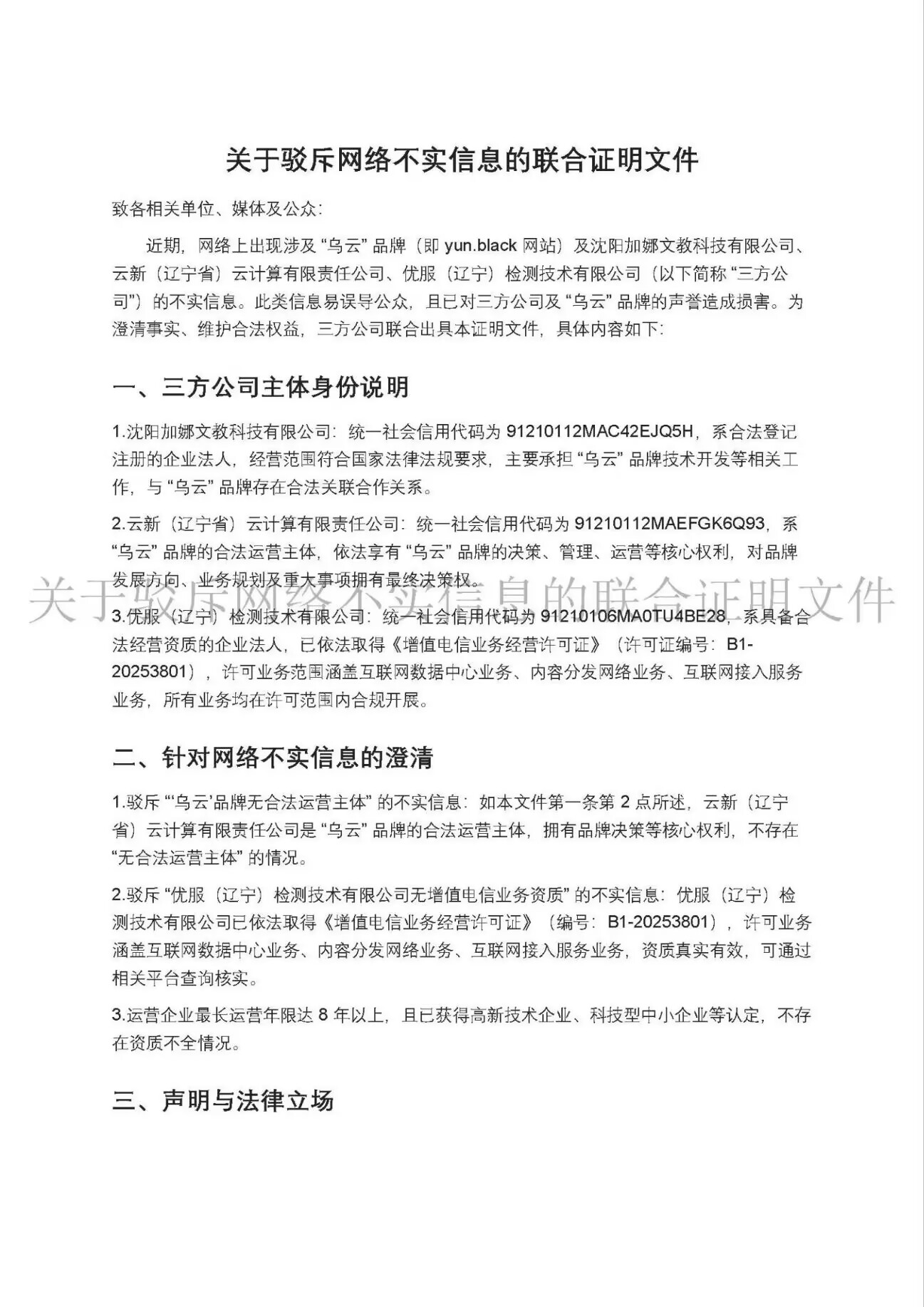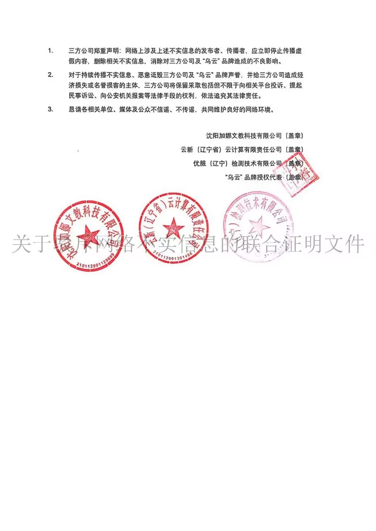 关于驳斥网络不实信息的联合证明文件
